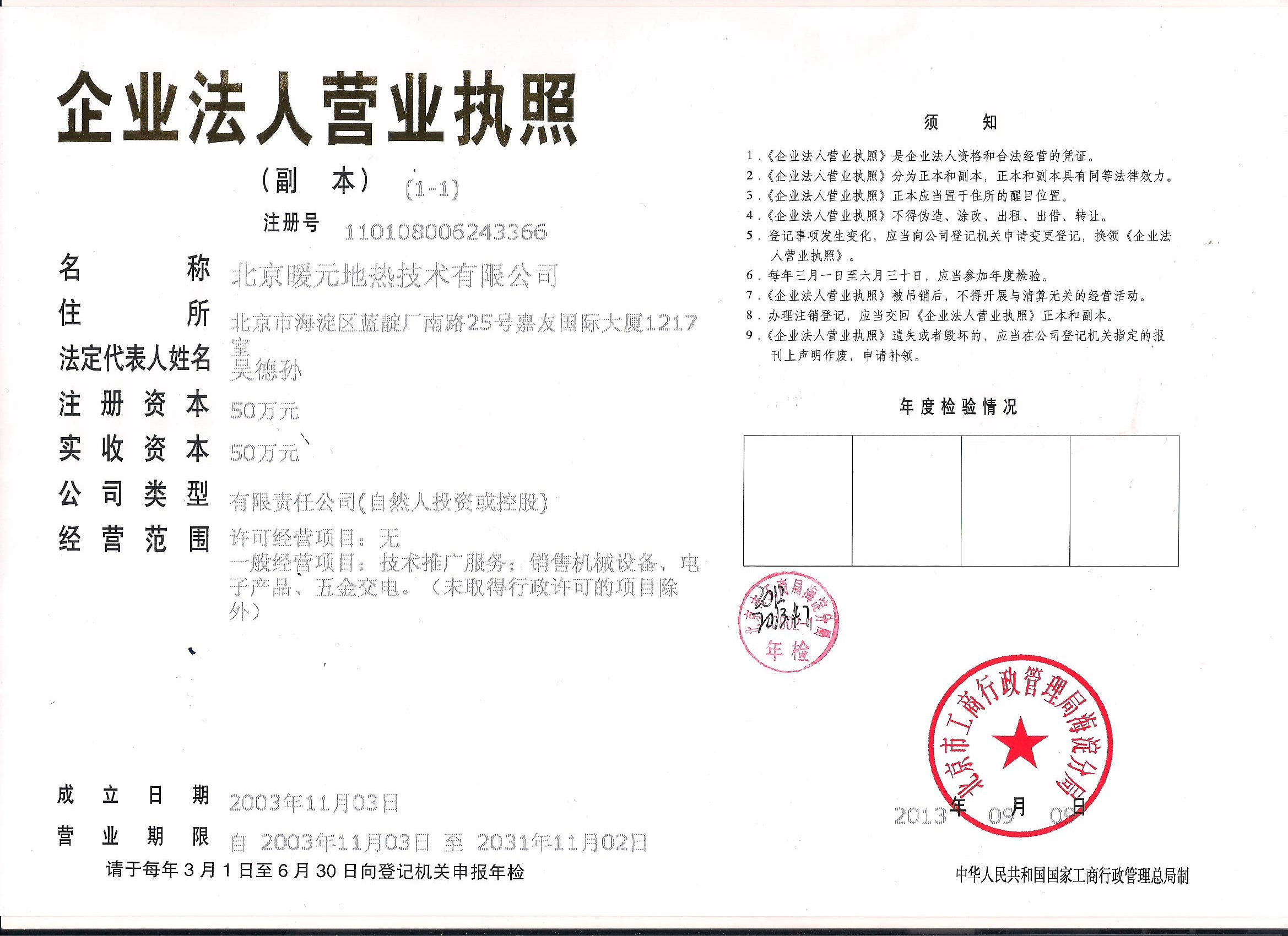 北 京 暖 元 地 热 技 术 有 限 公 司 |